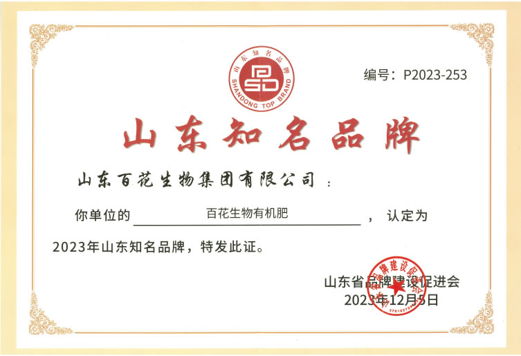 恭贺“百花生物有机肥”获得山东知名品牌