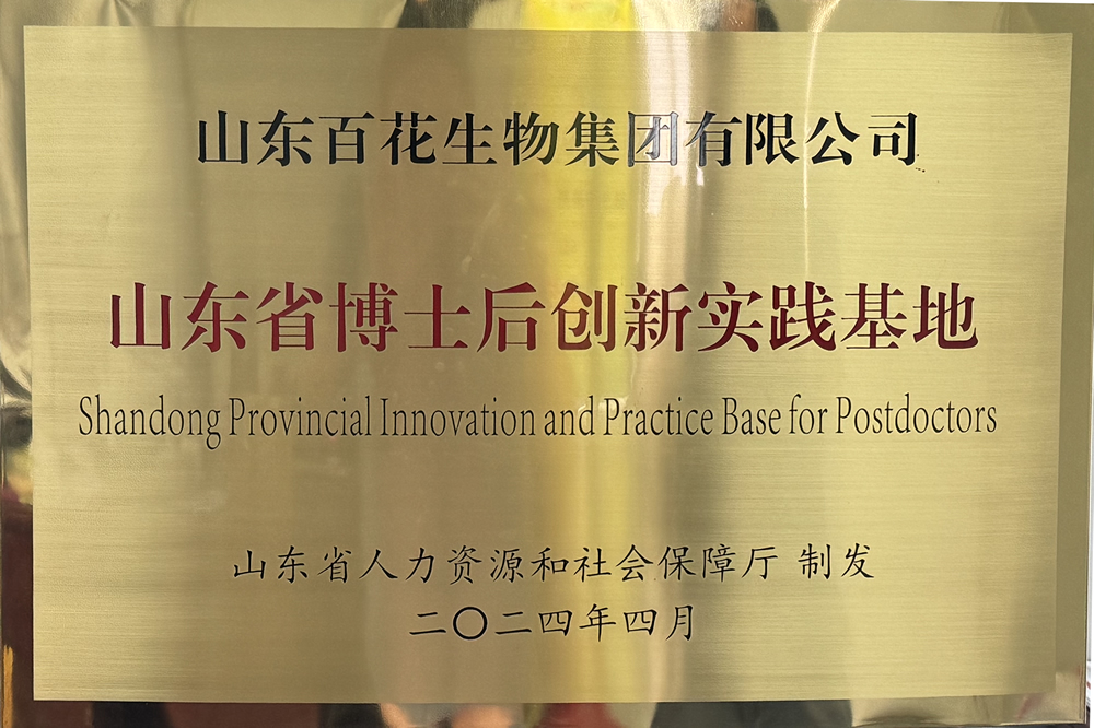 根据《山东省博士后创新实践基地管理办法》有关规定,2024年山东省博士后创新实践基地认定名单(第四批)正式公布,认定山东百花生物集团有限公司为山东省博士后创新实践基地,授予“山东省博士后创新实践基地”牌匾。