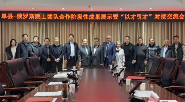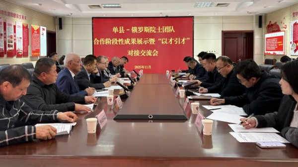 11月3日,单县召开与俄罗斯院士团队交流座谈会。菏泽市招才引智服务中心副主任毕玉亮同志,单县县委副书记于虎同志,山东百花生物集团总经理刘恩城同志,县直有关单位、部分镇街及相关企业有关负责同志参加会议。