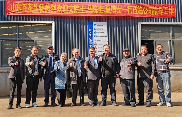 马兹洛夫·米哈伊院士、艾克拜尔?伊拉洪院士、夏蒂库洛夫·夏迪教授一行对山东百花生物集团进行深入考察调研,并与山东百花集团董事长刘全喜、总经理刘恩城等进行密切交流与合影留念,院士们对百花生物集团的产品创新、科技研发、技术升级等进行指导。